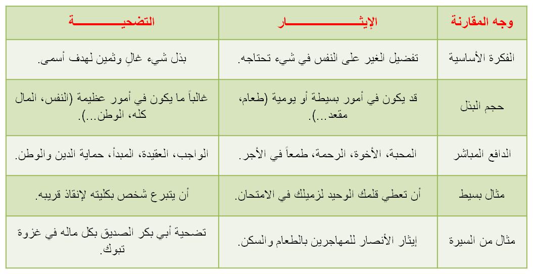 الخطوة الثالثة: المقارنة لترسيخ الفهم (جدول توضيحي)